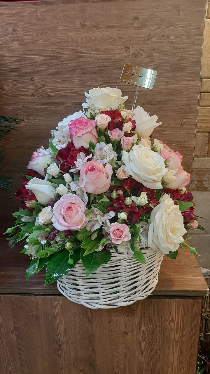 سبد گل رز و گل‌های فصلی طبیعی هدیه‌ای شیک و رنگارنگ