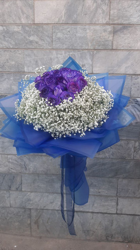 دسته گل طبیعی ژیپسوفیلیا و رز هلندی شیک و رومانتیک